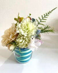 上部はお手入れいらずのアーティフィシャルフラワー。カラーバリエーションも豊富なので、お好きな色でお部屋を彩る事が出来ます。置く場所を選ばないコンパクトなサイズなので、大切な方へのプレゼントにもおすすめです。
