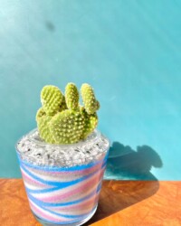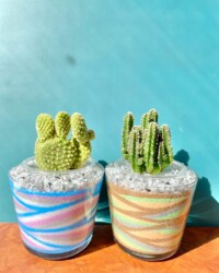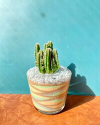 お手入れが楽な本物のサボテンを植えてあります。カラフルなお砂で作ったウェーブ模様が特徴です。カラーも5色から選べて、飾りやすいサイズなので、キッチンや玄関など場所を選べず飾れます。大切な方へのプレゼントにもおすすめです。