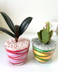 お手入れが楽な本物のサボテンを植えてあります。カラフルなお砂で作ったウェーブ模様が特徴です。カラーも5色から選べて、飾りやすいサイズなので、キッチンや玄関など場所を選べず飾れます。大切な方へのプレゼントにもおすすめです。